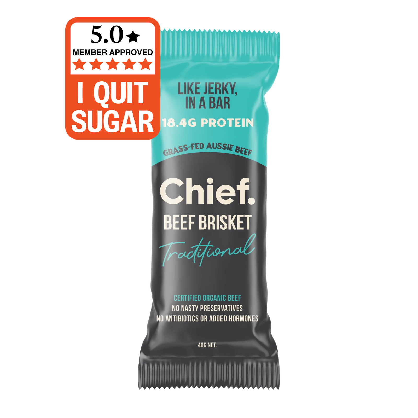 The claims: A clean, meaty snack bar to satisfy your savoury cravings. Each snack bar starts off as 80g of organic grass-fed beef brisket and topside; slow dried to create a tender and easy-to-eat snack bar that's packed full of flavour and nutrients. Whether you're embarking on a new adventure or simply need a quick, satisfying snack, Chief beef brisket bars are the perfect choice.
